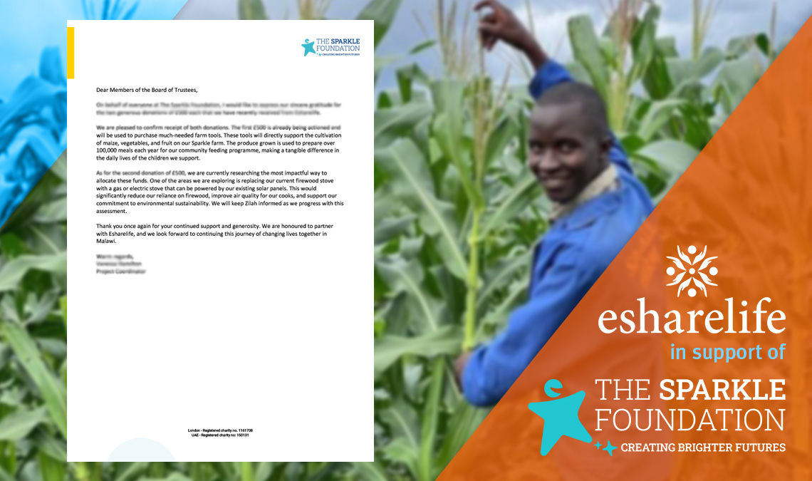 Esharelife is proud to support Sparkle Malawi, one of our newest beneficiaries, in their mission to improve community nutrition through sustainable farming. As part of our ongoing commitment to meaningful, long-term development, we are particularly delighted to announce a donation to Sparkle’s nutrition programme—made possible through the success of our summer fundraiser.